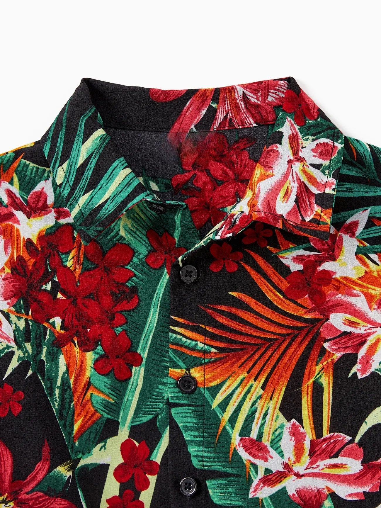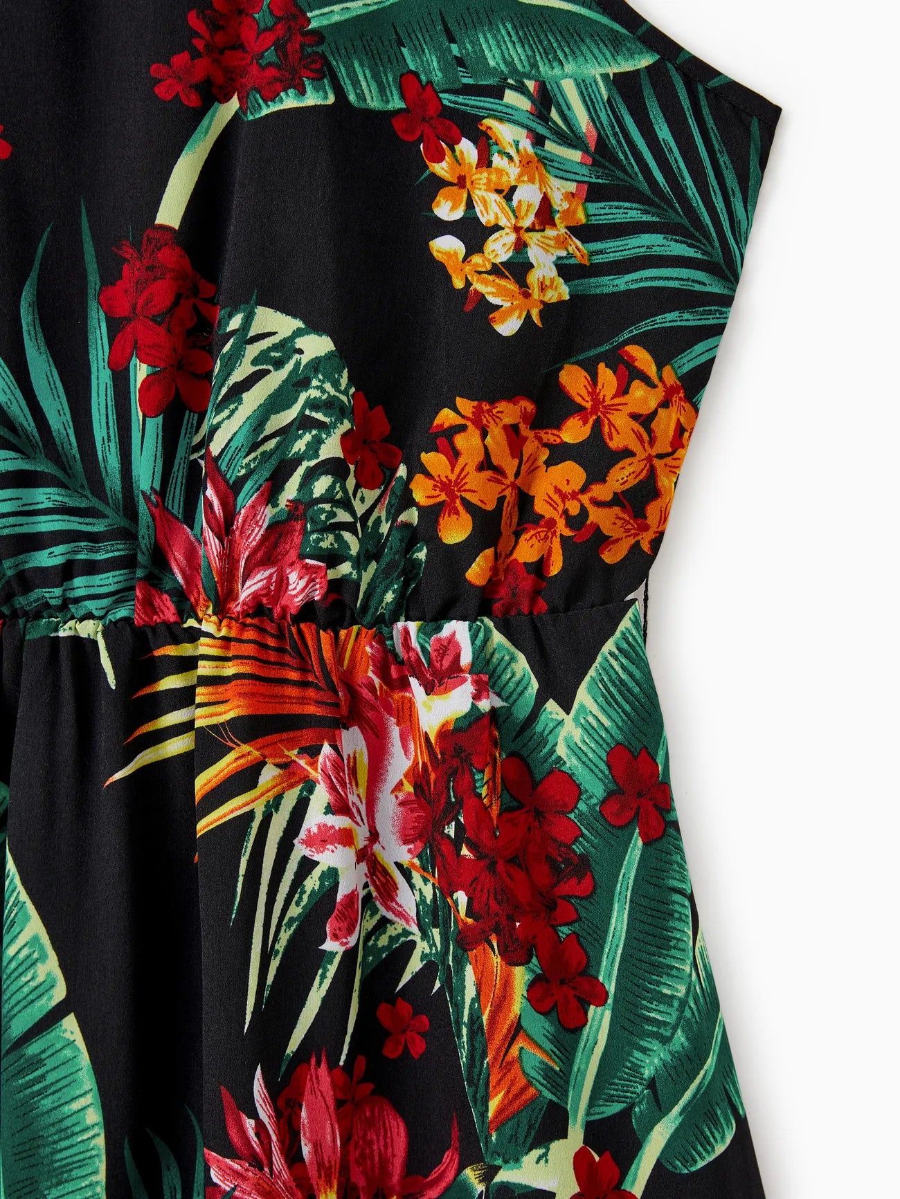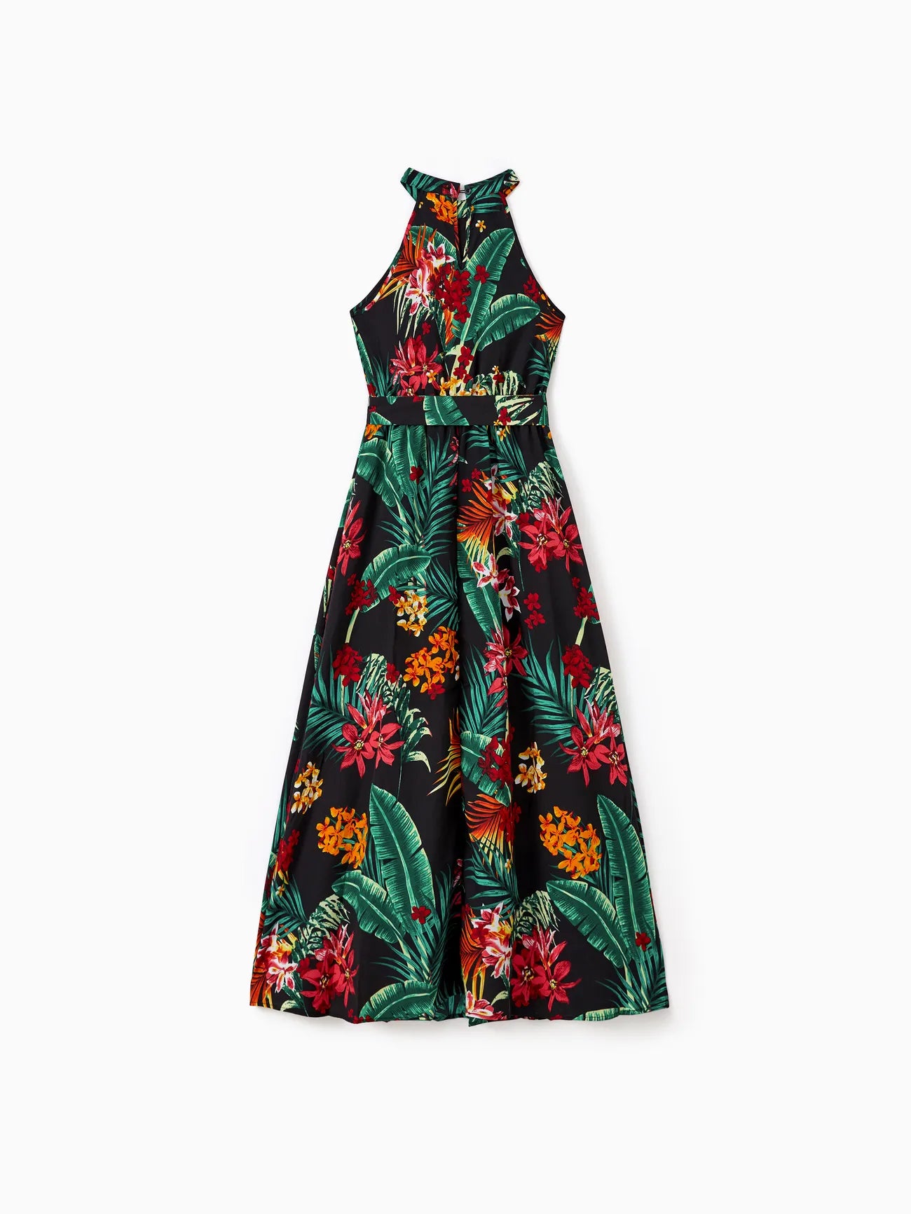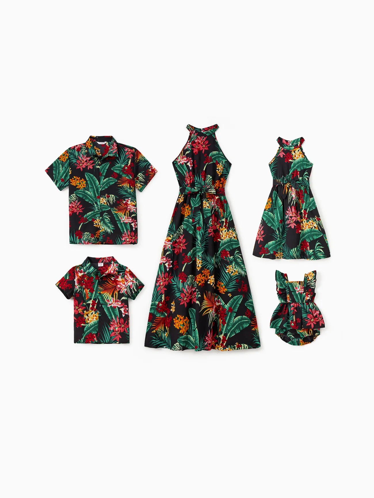 Introduce your family to coordinated elegance with our Allover Plant Floral Print Family Matching Sets. These sets include halter-neck dresses for women and girls and short-sleeve shirts for men and boys, providing a stylish and cohesive look for any casual outing.