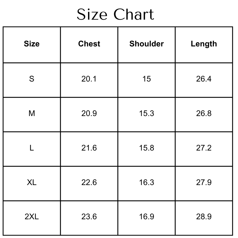 Size Chart(inches):