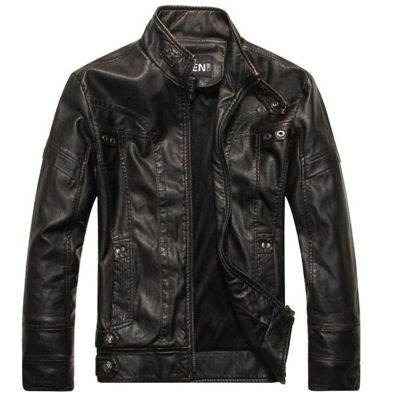 Autumn Winter Classic Motorcycle Leather Jacket is made of PU leather and it has a geometric pattern. This jacket has cotton lining along with rivets and a zipper that makes the jacket center of talk, wherever you go. This casual wear jacket comes in regular length and full sleeve length.