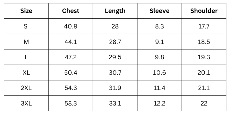Size Chart(inch):