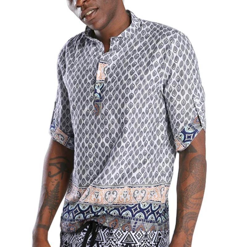 Casual Beach Shirt with loose fit is the perfect way to add some vacation vibes to your 9-to-5 hours or to an actual vacay. The shirt is half sleeve with calming printed patterns and stand collar.