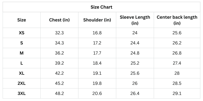 Size Chart (Inches):