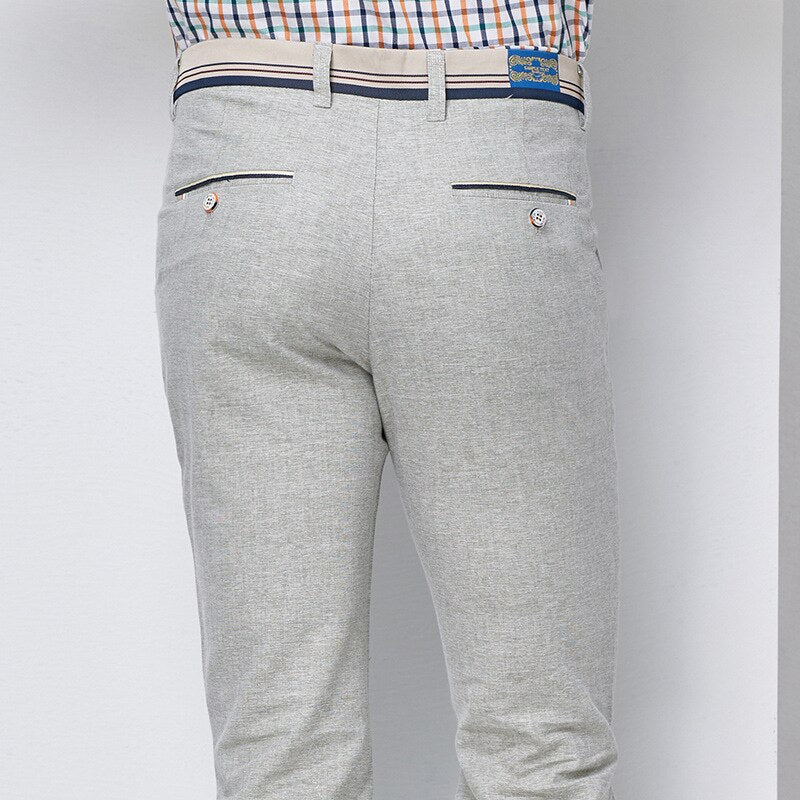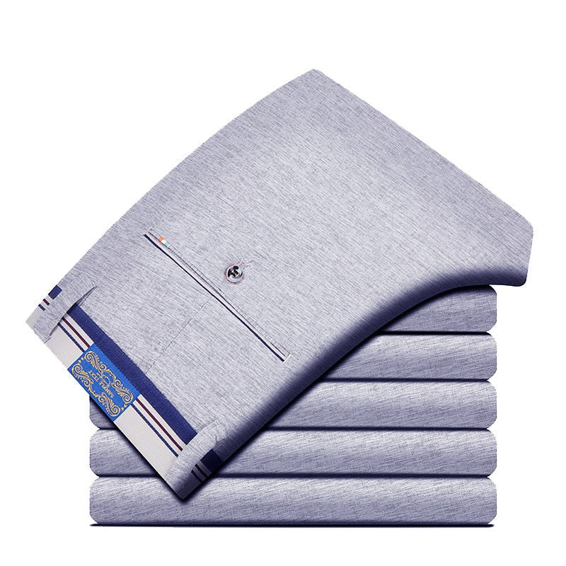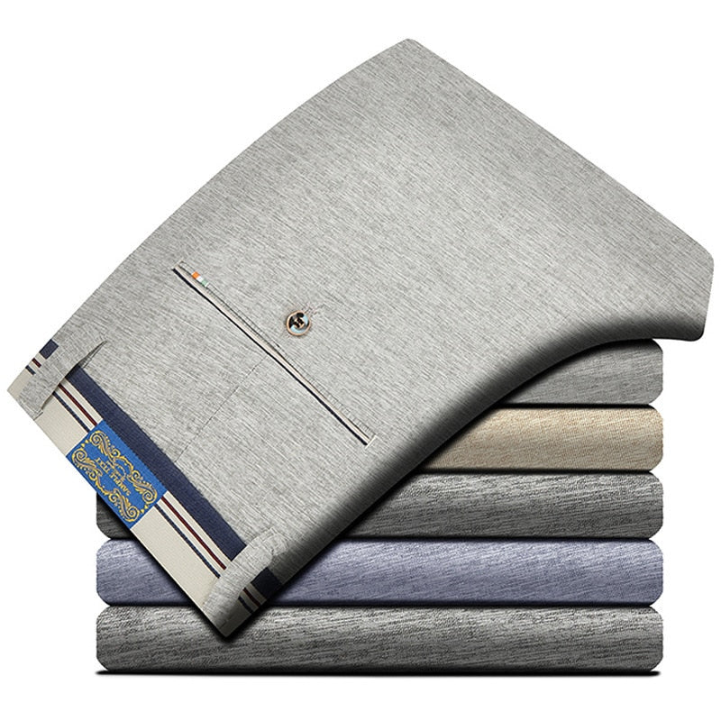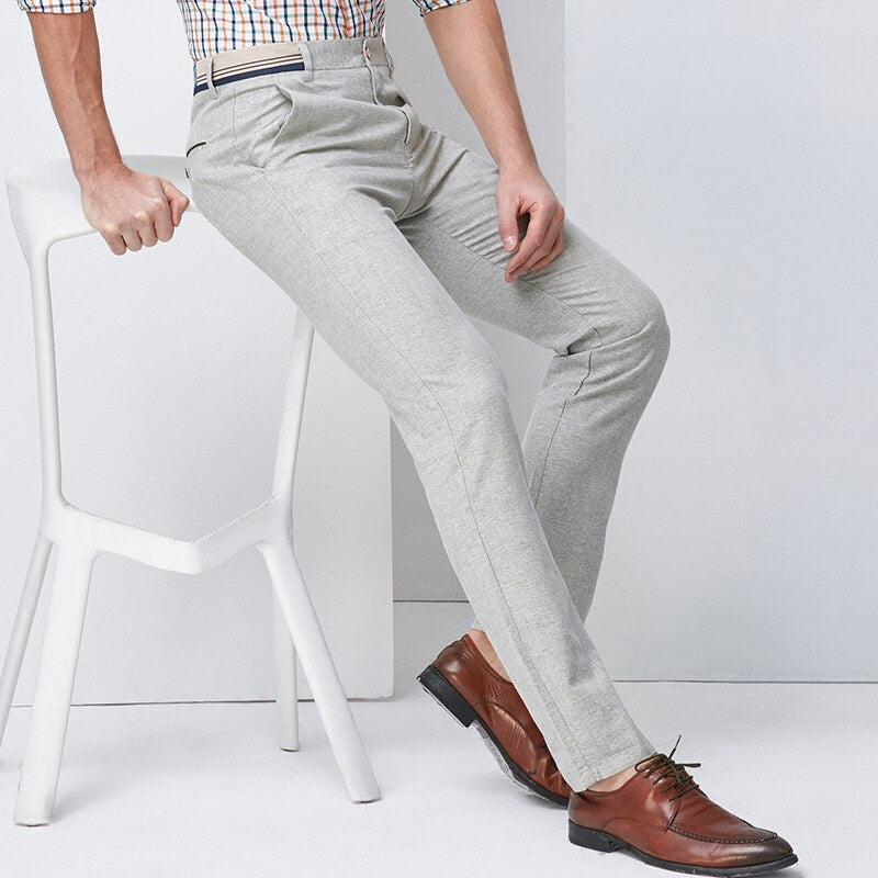 Casual Solid Elasticity Slim Trousers are designed to fit comfortably, slim, and stylishly. They come in a number of color choices and are available in both light and dark shades. Pair these with any kind of shirt or turtleneck for a formal outfit or opt for a tunic sweater, t-shirt, or shirt to add an element of comfort to your suit look.