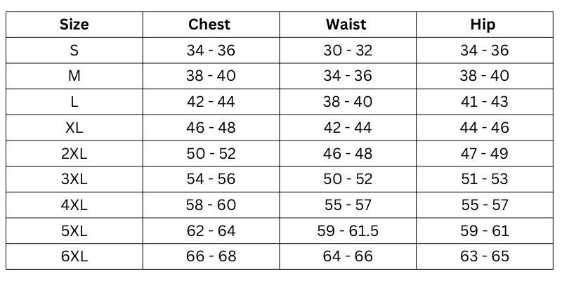Size Chart (Inches):