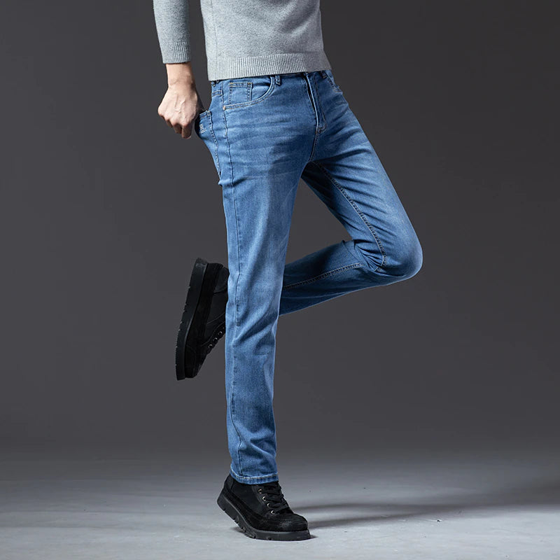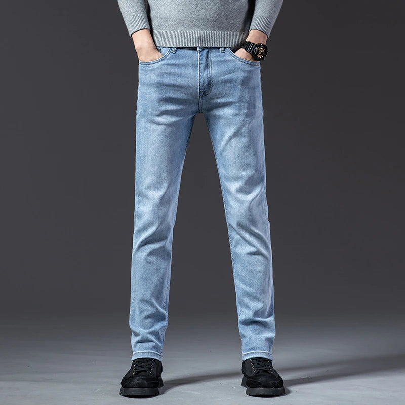 These Causal Slim Fit Straight Denim Jeans will entice you. Wearing these jeans will actually boost your self-assurance. These are easy to wash in a washing machine and are made with high-quality materials. These are perfect for all seasons and are composed of high-quality materials. Pick your favorite from the black, gray, light blue, and blue color option.