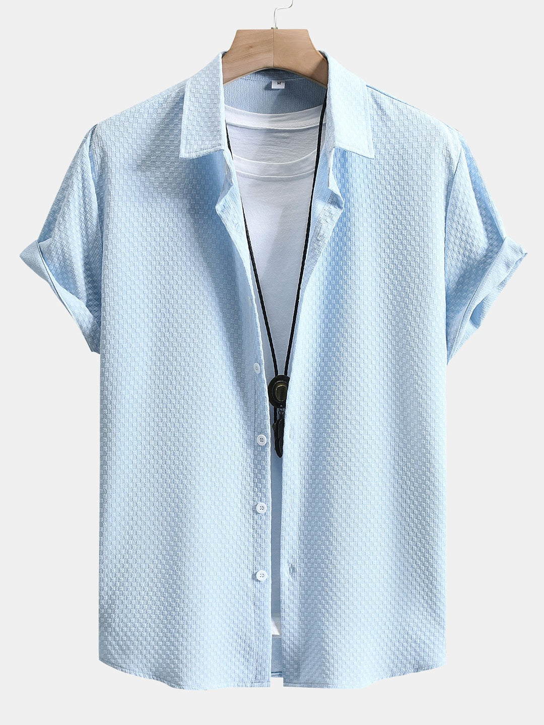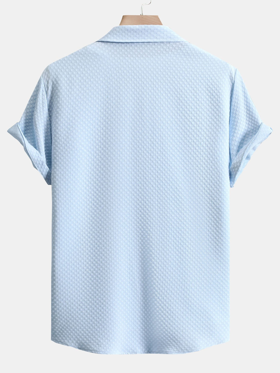 Special Features: The shirt stands out with its unique checkerboard texture, which adds a dimension of depth and personality to the garment.