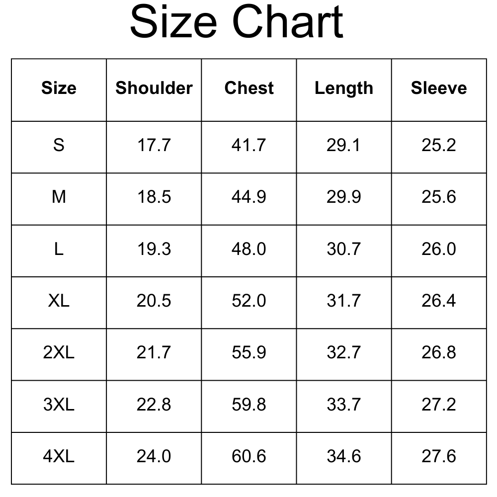 Size Chart(inches):