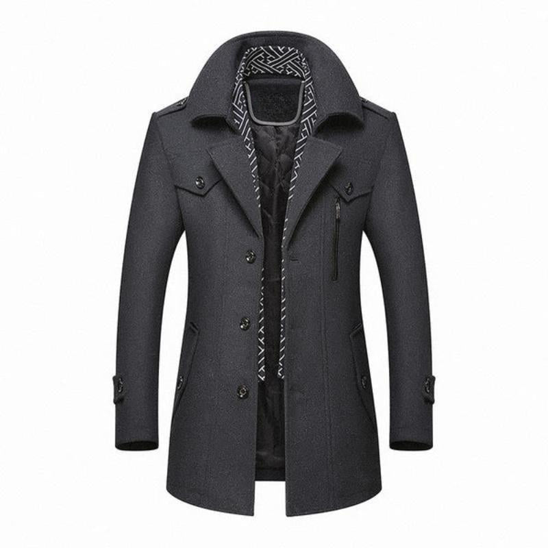 Double-Button Design: The classic double button closure not only adds sophistication but also enhances the coat’s fit.