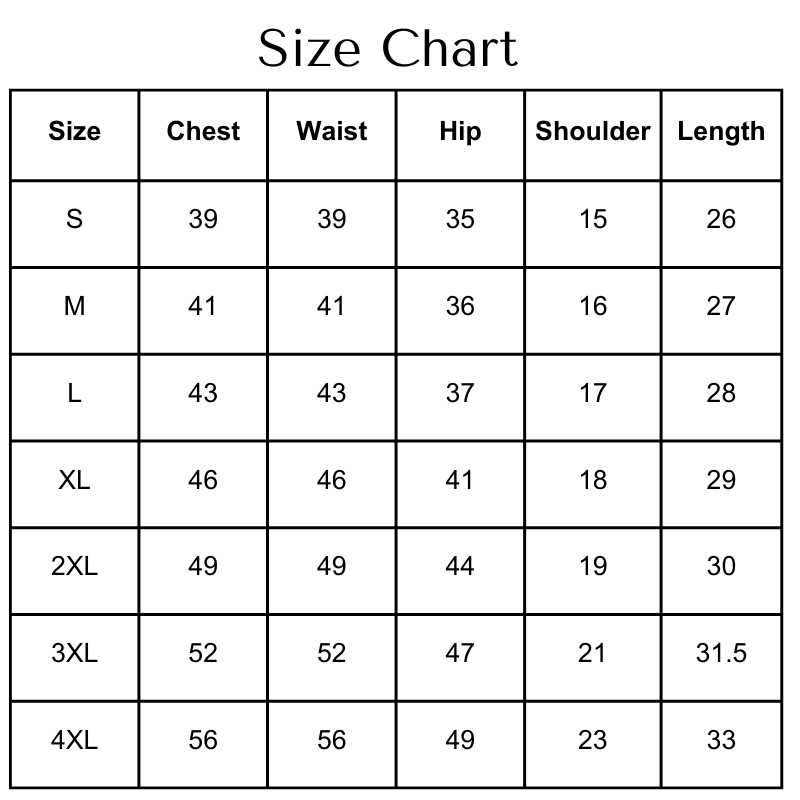 Size Chart(inches):