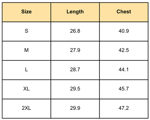 Size Chart(inches):