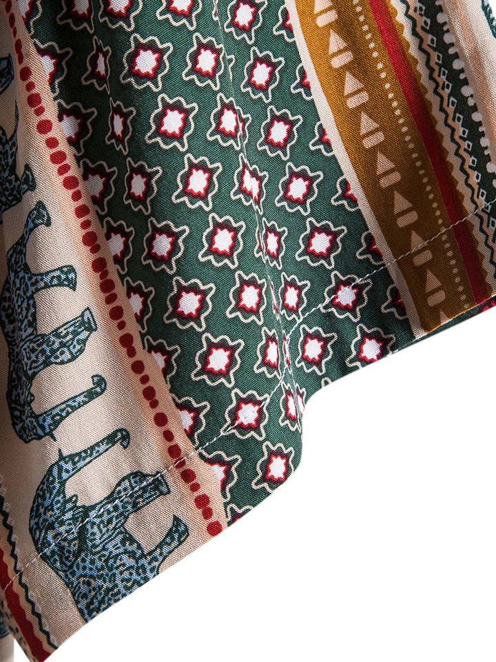 Embrace a fusion of traditional motifs and eclectic style with this Elephant Geometric Print Shirt, designed for those who dare to stand out. The vibrant geometric and animal patterns make it an ideal choice for individuals with a flair for the artistic and unique in their apparel choices.
