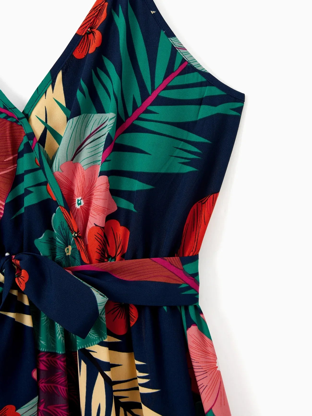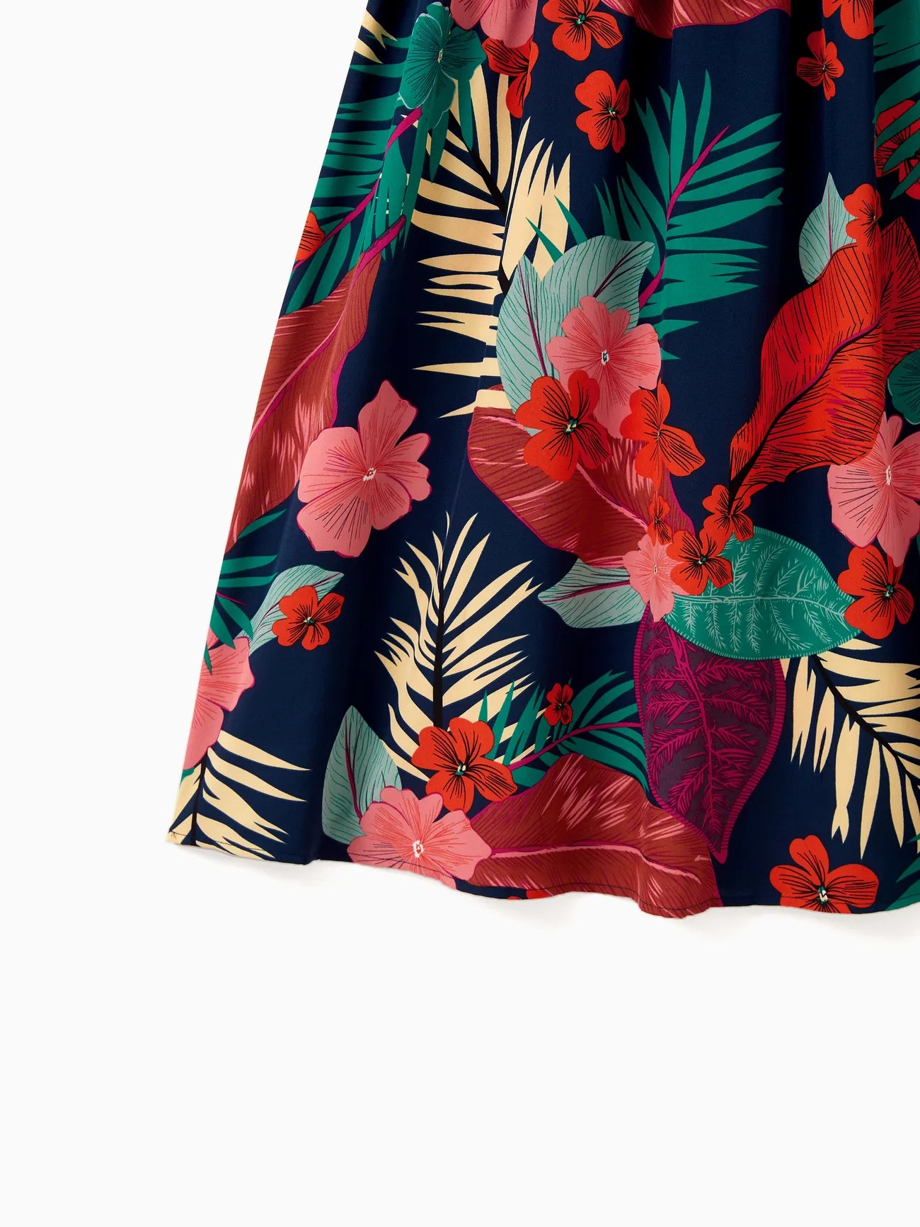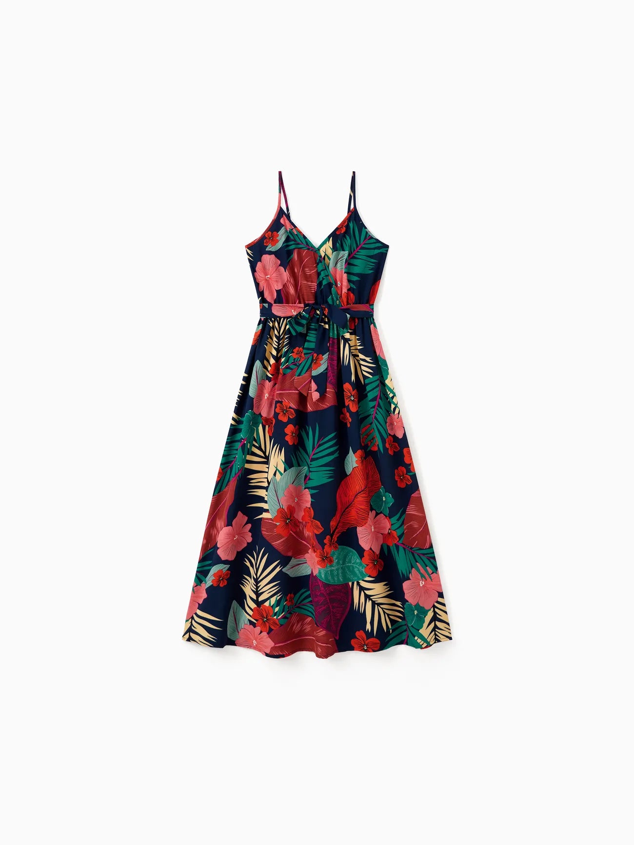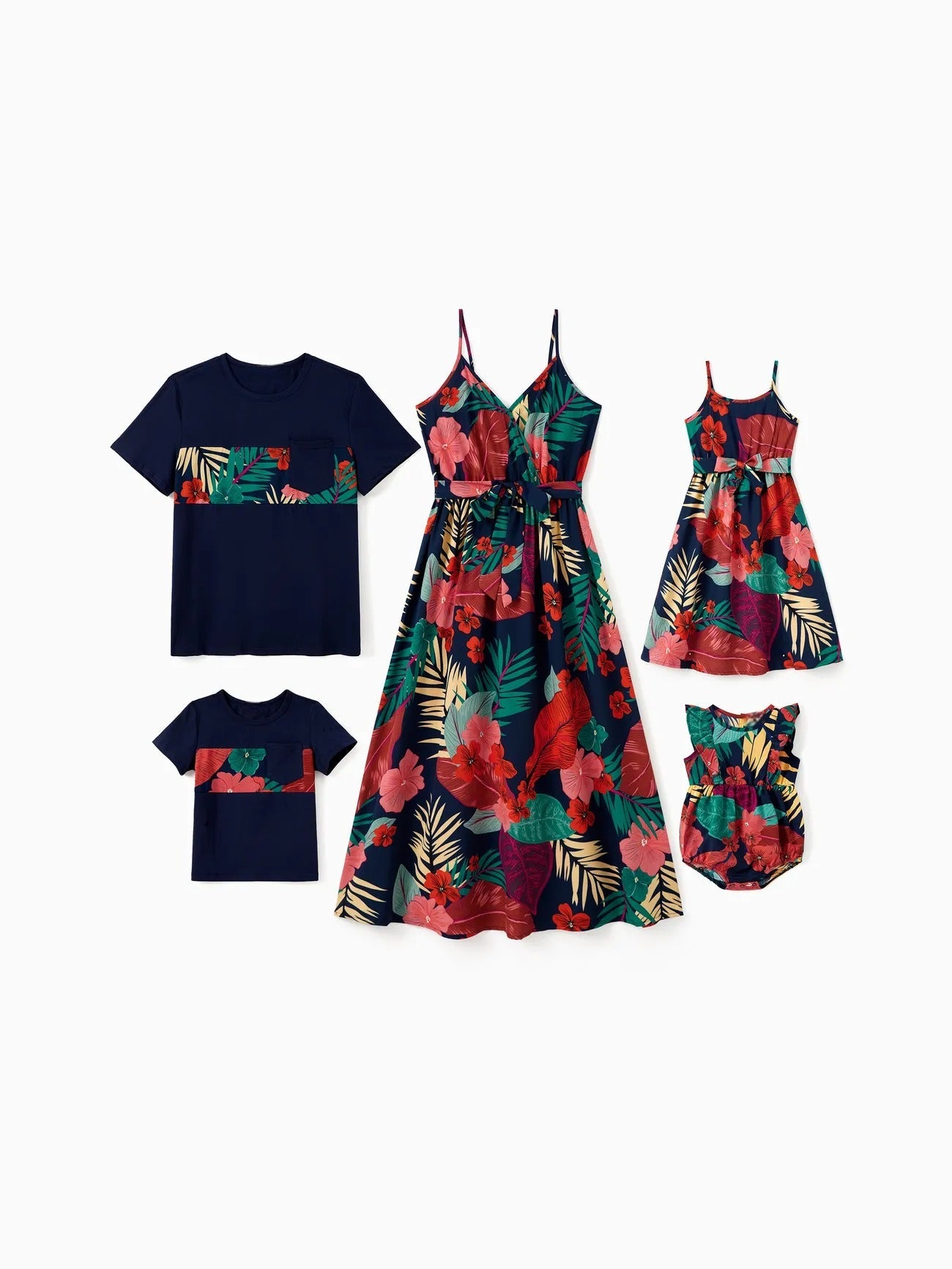 Enhance your family's wardrobe with these elegant floral print slip dresses and short-sleeve t-shirt sets. Ideal for coordinated looks, these outfits offer both comfort and sophistication for any occasion.