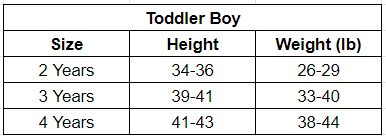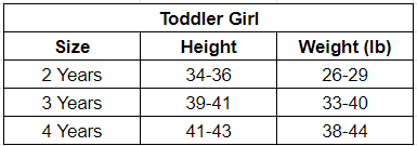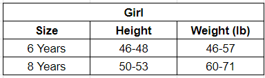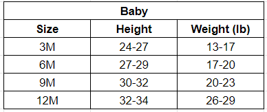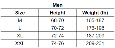Size Chart (Inches):
