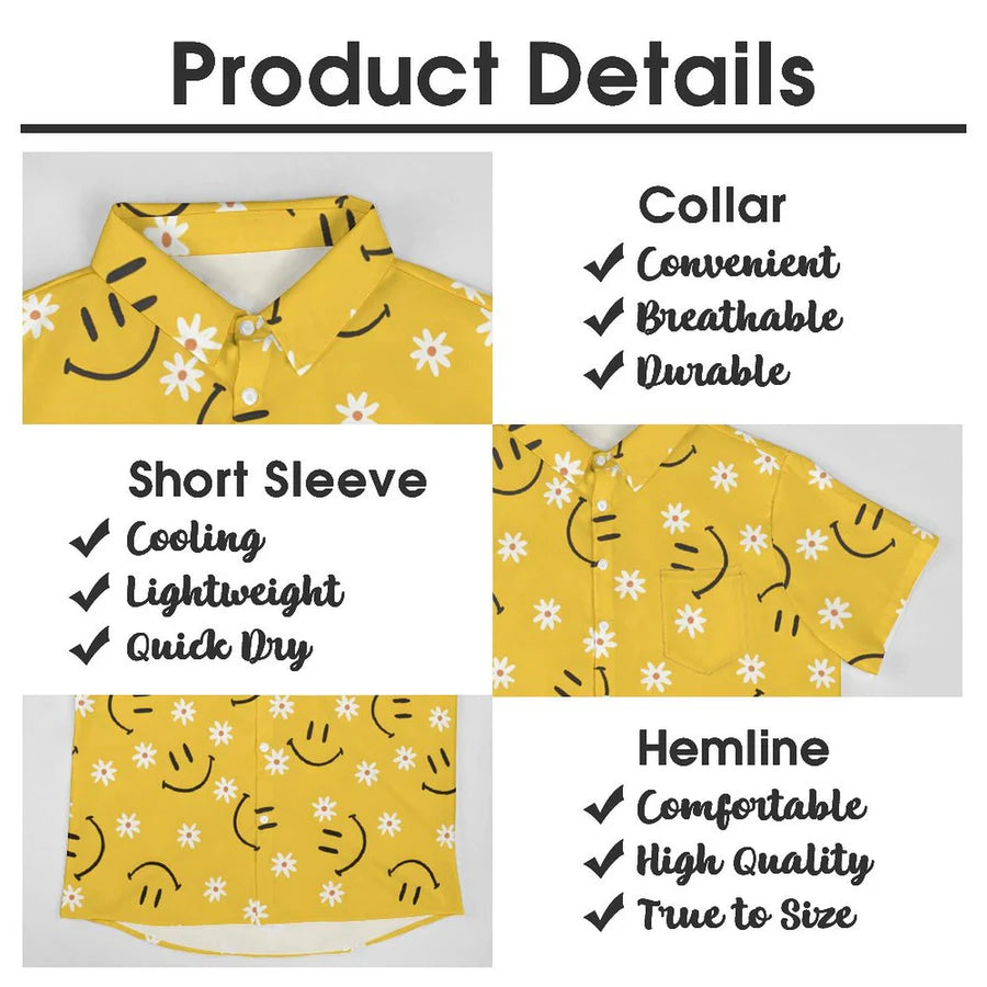 Elevate your casual style effortlessly with the Floral Smiley Short Sleeve Graphic Shirt, designed to bring joy and comfort to your summer wardrobe.