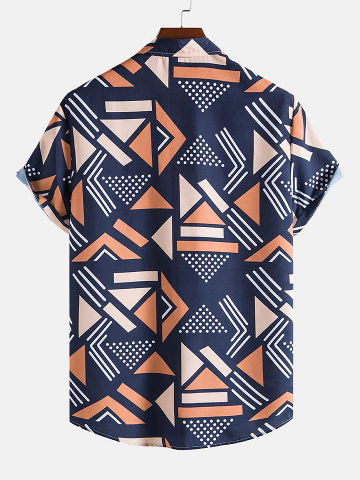 Embrace a fusion of traditional motifs and eclectic style with this Geometric Print Shirt And Swim Shorts, designed for those who dare to stand out. The vibrant geometric and animal patterns make it an ideal choice for individuals with a flair for the artistic and unique in their apparel choices.