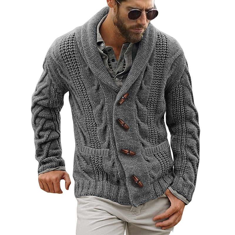 The Knitted Shawl Collar Cardigan With Pockets is designed to offer both warmth and style. Featuring a sophisticated shawl collar, this cardigan enhances any outfit while ensuring comfort during colder days. The cable knit pattern adds a touch of texture, making it an ideal choice for those seeking versatile outerwear that can be dressed up or down.