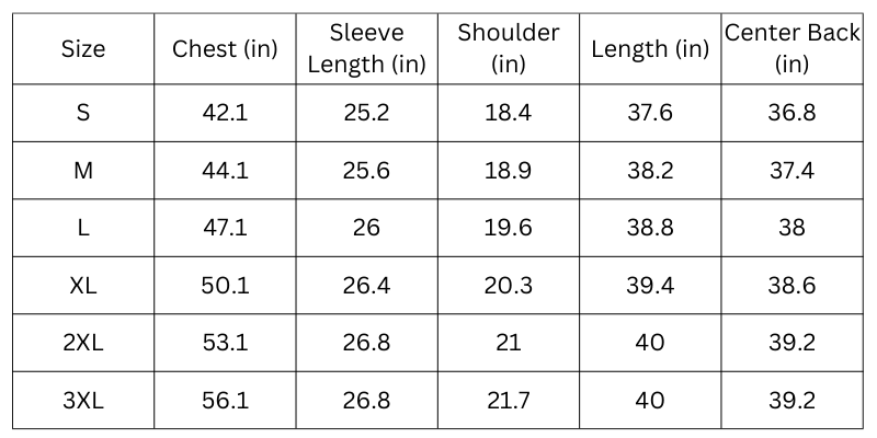 Size Chart (Inches):