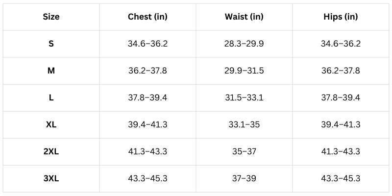 Size Chart (Inhces):