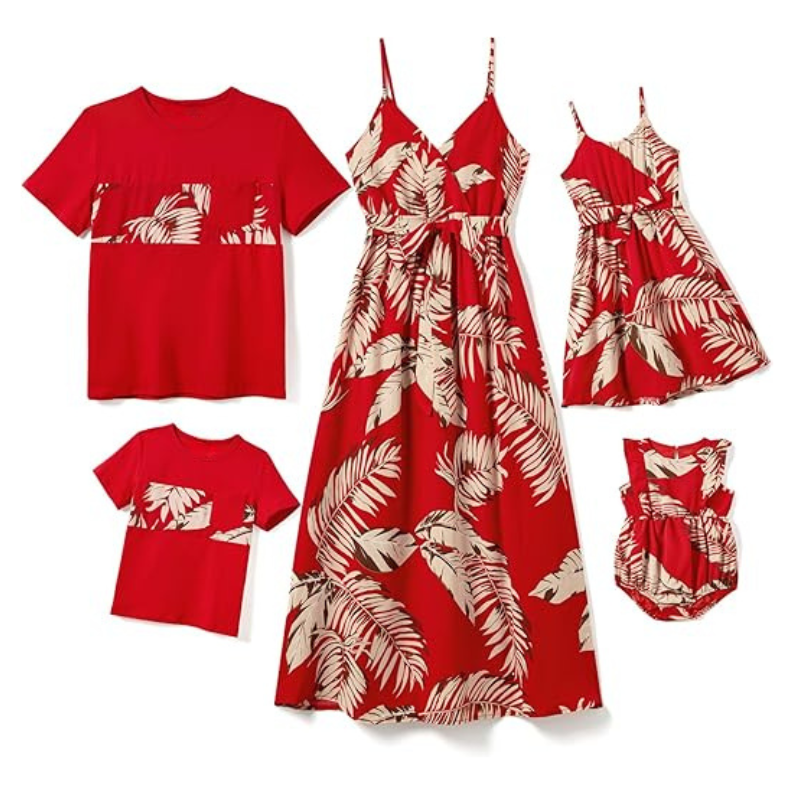 This Matching Family Leaf Print Outfit Set is designed to bring a tropical vibe to your family's wardrobe, offering both style and comfort for any special occasion.