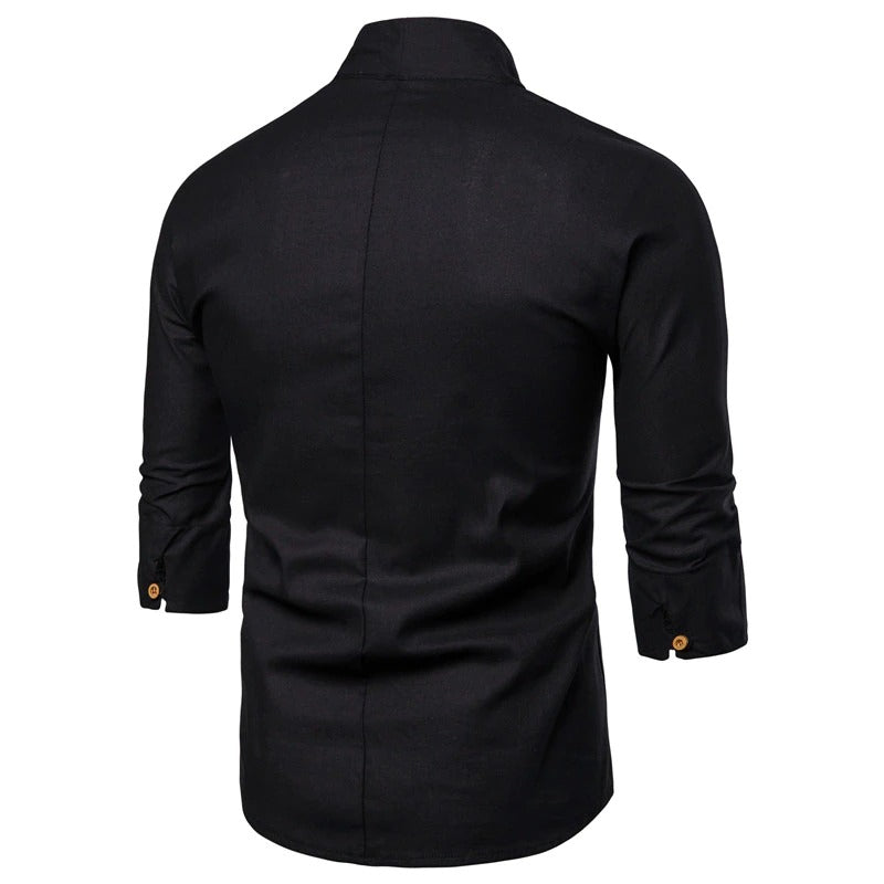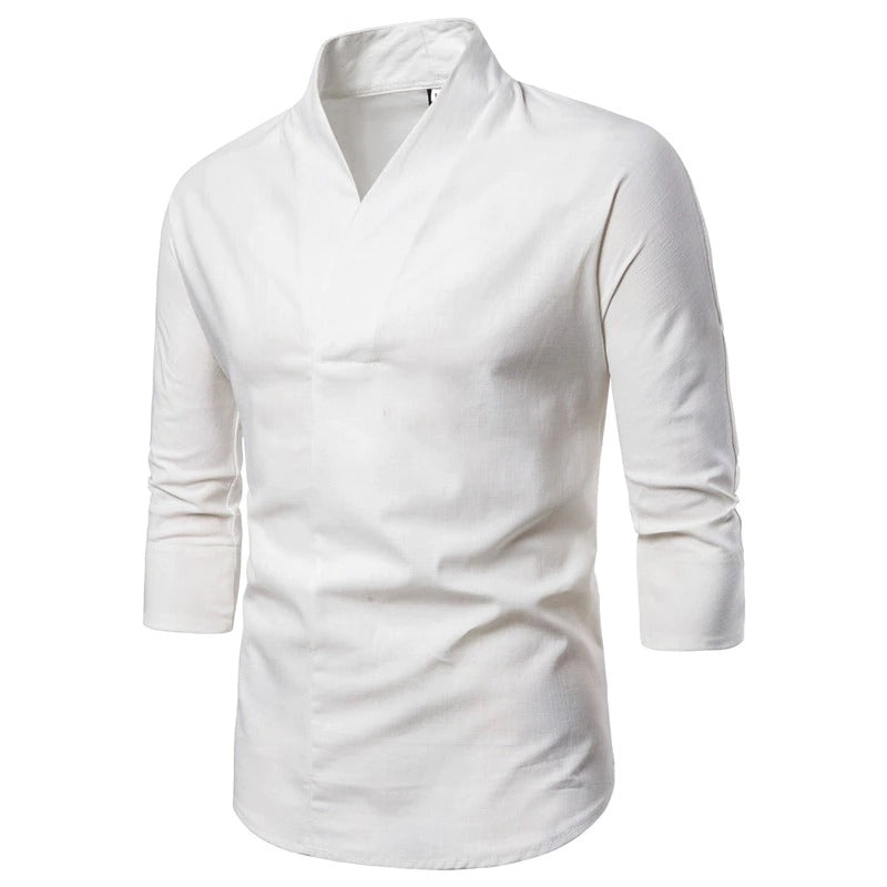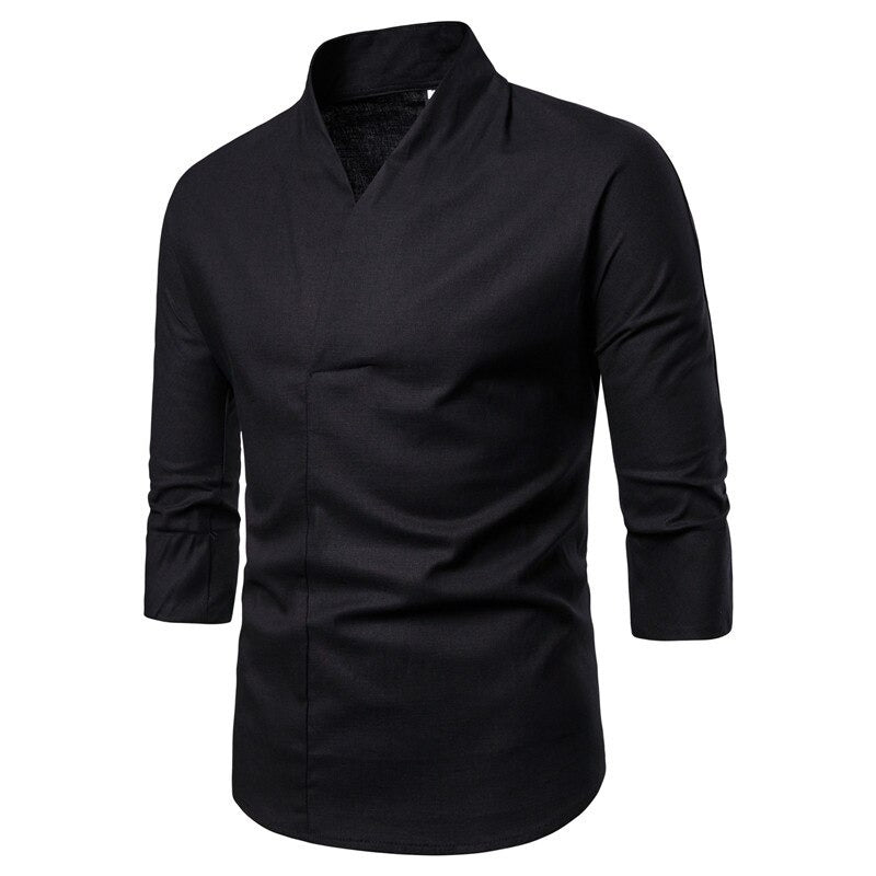 Wearing Men Solid Pullover V Neck Three Quarter Kimono Shirts can enhance your attractiveness. This plain-patterned, casual shirt is masterfully designed to provide you with all-day comfort and a great appearance. These well-made shirts are excellent for wearing to social gatherings, business meetings, and parties. You may choose your favorite from among the magnificent shirts that are created with fine cotton, linen, and polyester and are available in 3 exquisite colors and 6 sizes.