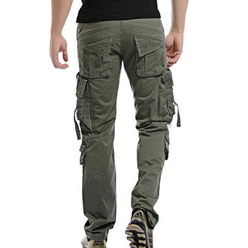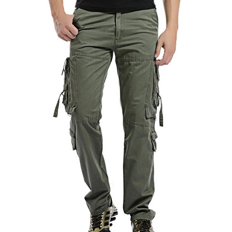 The Men's Casual Loose Multi-pocket Pants are applicable in all four seasons. It has a midweight thickness and an oxford fabric. These polyester-made loose-fit pants look very cool and come with a pleated front style. It is available in six colors.