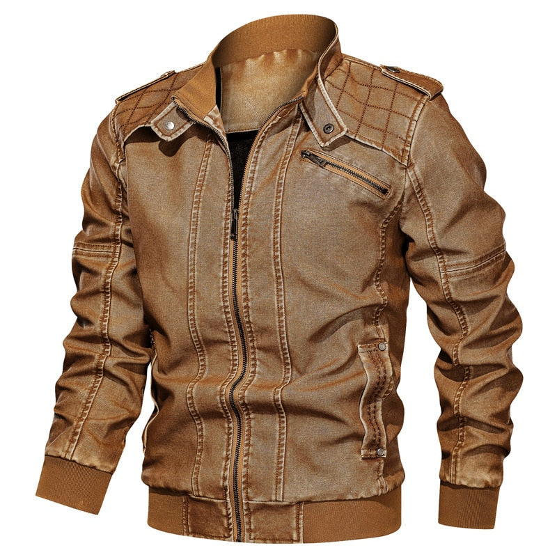 The Men's Casual Patterned Biker Leather Jacket gets you into that biker mood. Due to its fleece thickness it is perfect for long drives. It is made with PU material and has a broadcloth fabric. It is available in three colors.