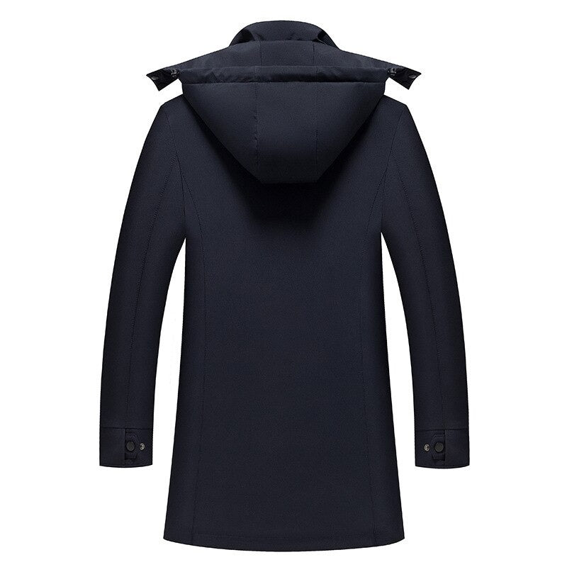 Men's Hooded Outdoor Long Down Jacket has a casual look and features a long length. This jacket comes with a detachable hood and liner so you can be the master of your style. Plus this jacket also comes with a solid pattern and full sleeves to keep you warm and cozy.
