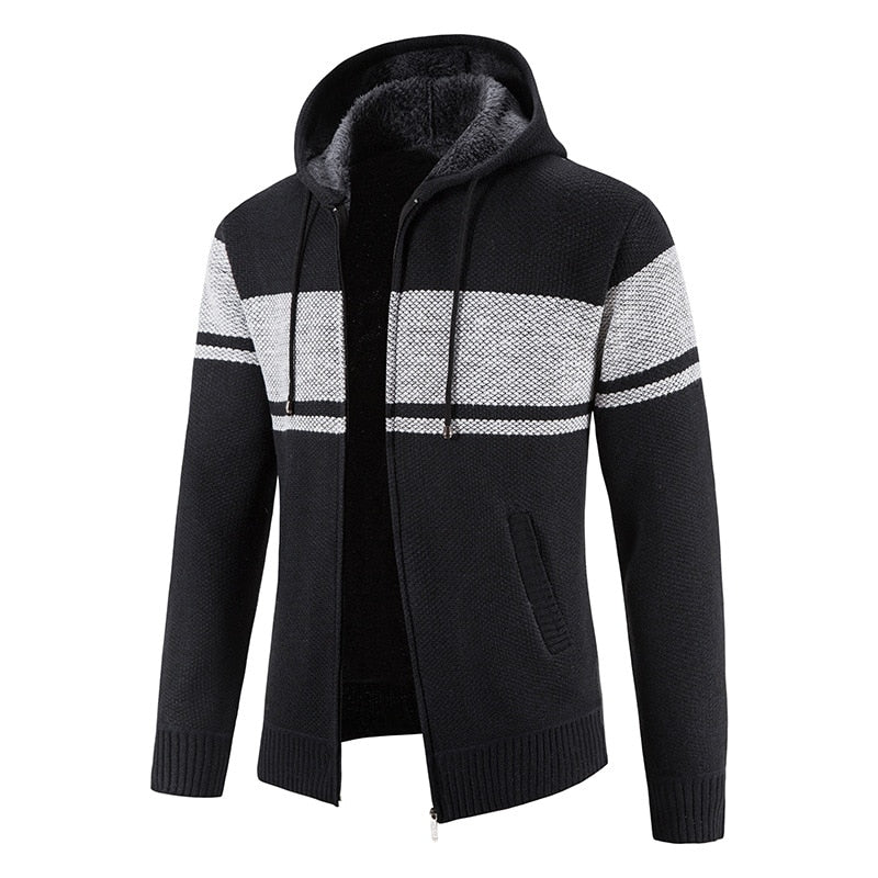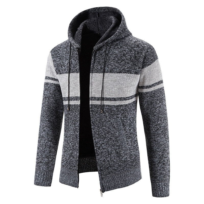 Men's Hooded Thick Fleece Knitted Cardigan
