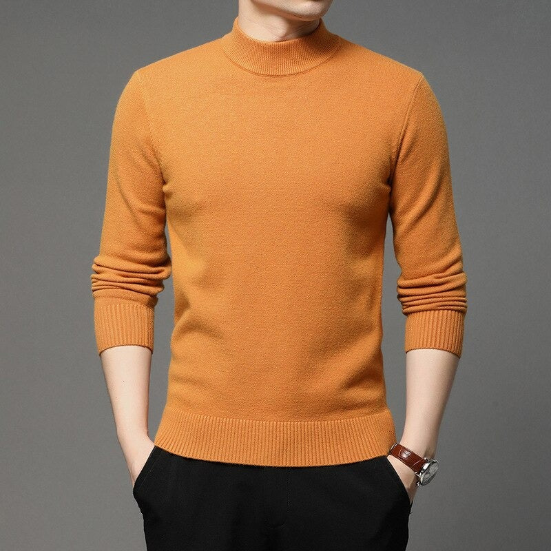 Embrace your aura by wearing the Men's Mock Neck Knitted Solid Pullovers collection. These pullovers make your personality very sharp. They are made of polyester and acrylic. It has a regular sleeve style and a standard thickness. It is available in 10 colors with six different size options.