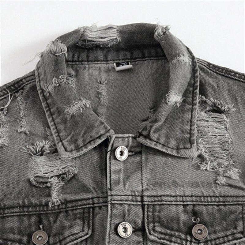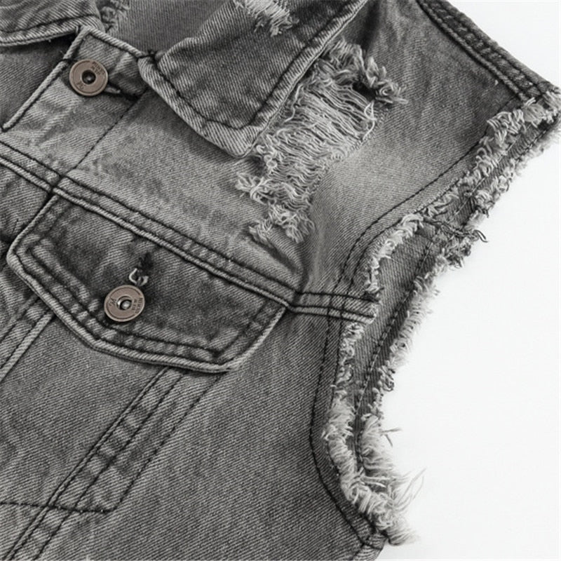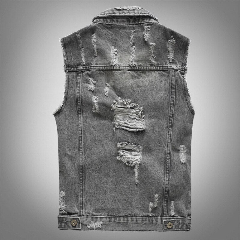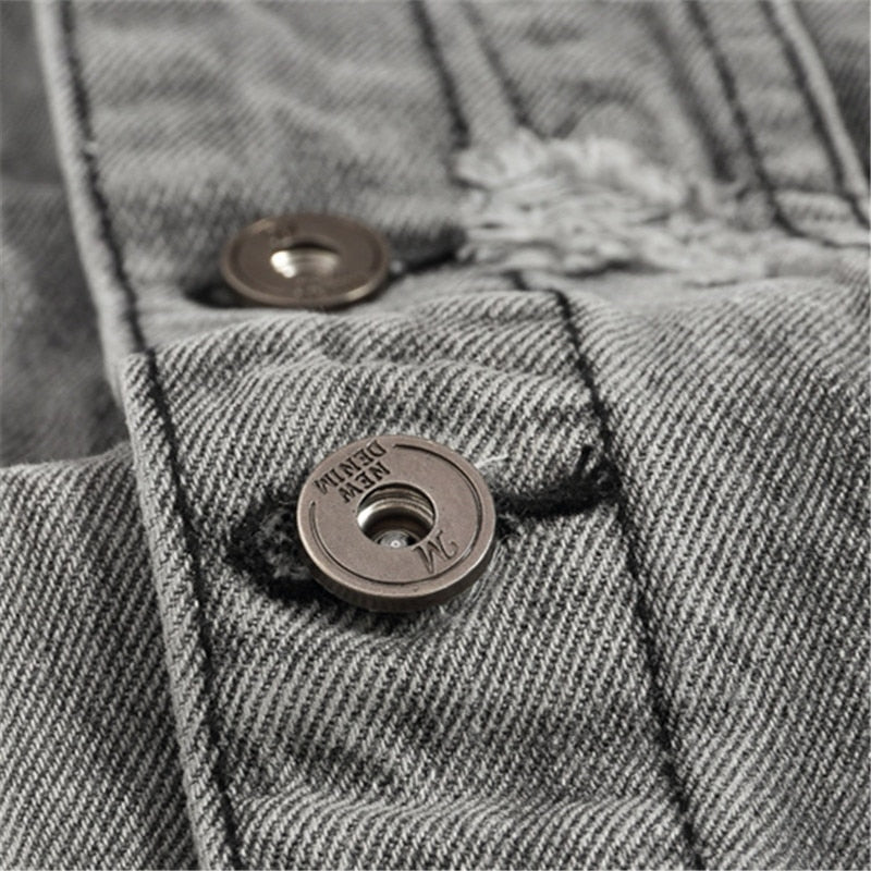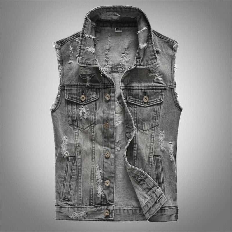 The Men's Solid Gray Denim Vest Jacket follows the ripped fashion and lets you be in style. It is made of cotton and polyester, giving it a shine of its own. The fit of the jacket is great it comes with featured pockets.
