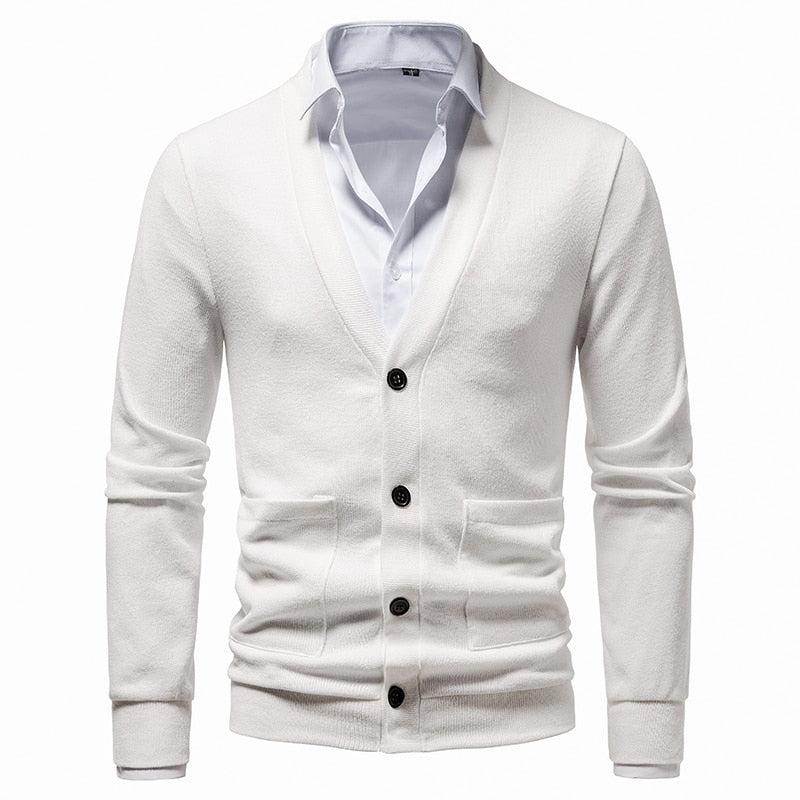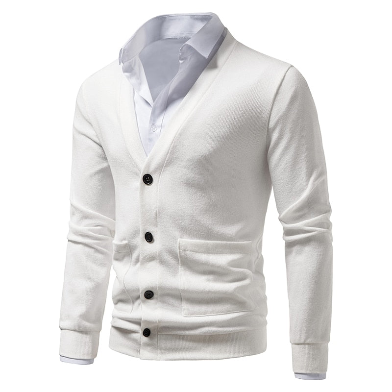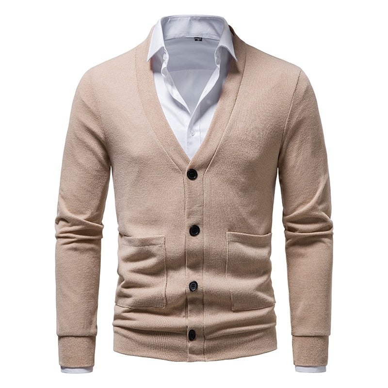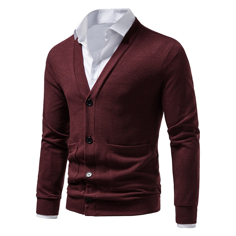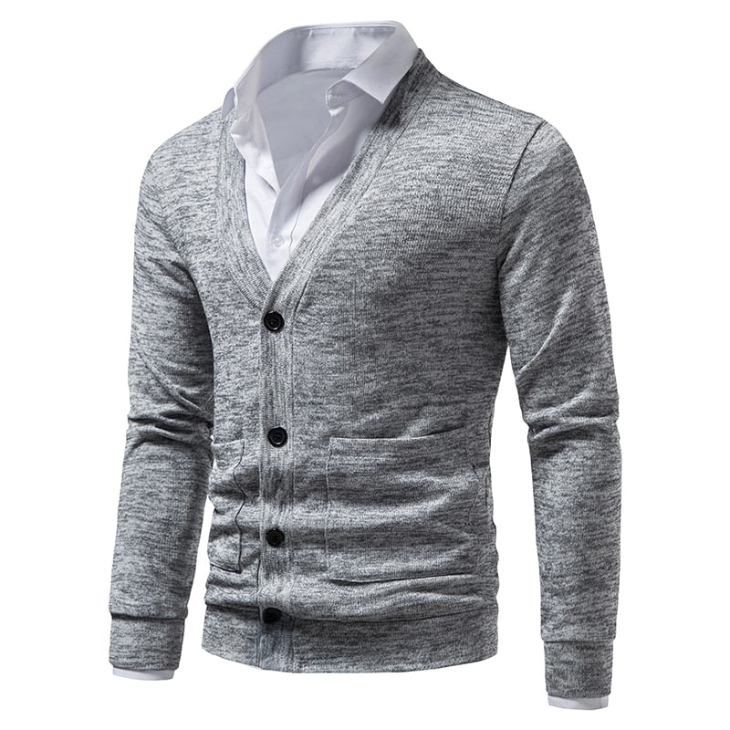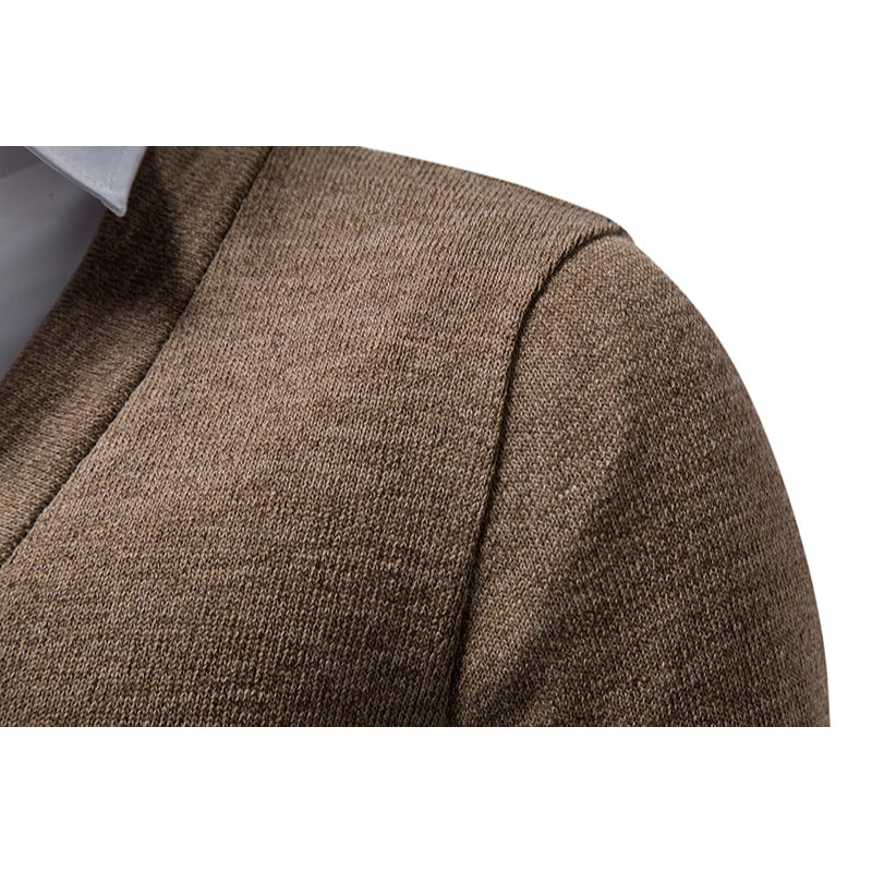 Men's Solid Knitted V-Neck Cardigan Jacket offers a great fit and has a standard thickness. This jacket has a regular sleeve style and one can have easy access to its side pockets. One can easily style it with anything and go for any kind of outing.