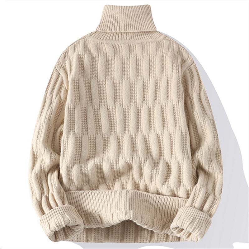 Get the amazing Men's Solid Turtleneck Patterned Pullover Sweater collection and dress better. This pullover sweater has a standard thickness and a regular sleeve style. It is knitted with standard wool and has a turtleneck collar. It is available in 4 colors with five different size options.