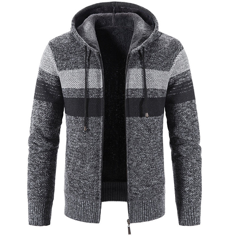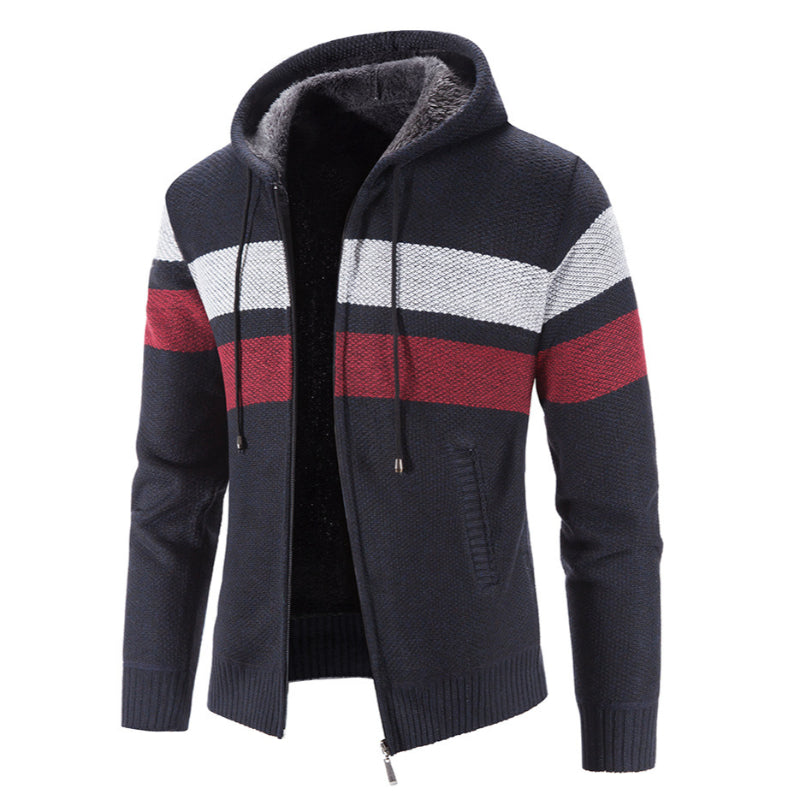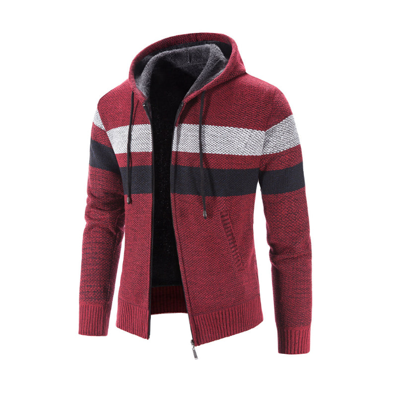 The polyester and acrylic made hoodie is perfect for daily use. Men's Stripes Hooded Cardigan Jacket goes well with everything. It has a turn down collar with a hoodie attached to it. One can style it with any lower of his choice. The texture of the jacket is of top notch quality.