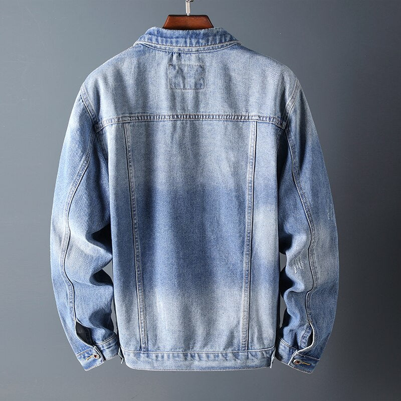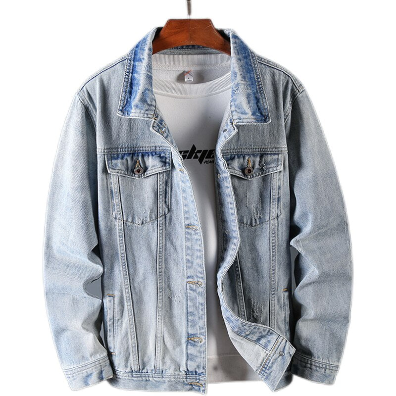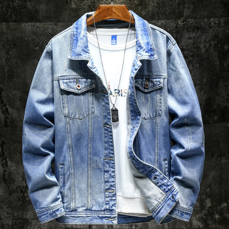 Men's Turn Down Collar Denim Jacket features a single breasted closure and has a solid pattern. This jacket carries a casual style and has a regular sleeve style. It has a standard thickness which makes it great for seasons like autumn and winter.