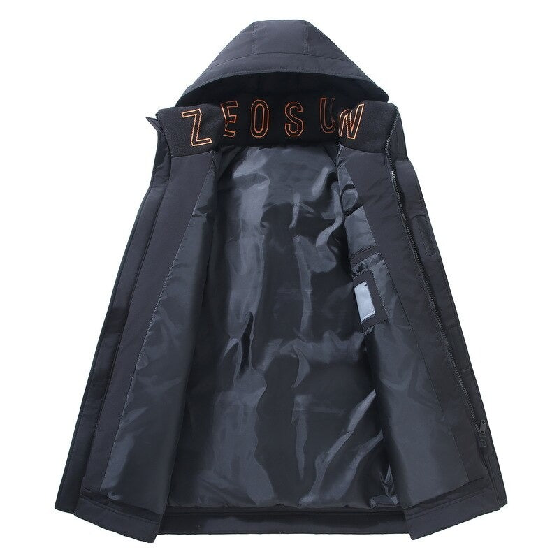 Men's Winter Long Warm Down Jacket can be worn both at home while you are enjoying or during a get-together. It has a standard thickness along with a zipper and a removable hood, so you don't have to worry about being stuck in a tough situation.
