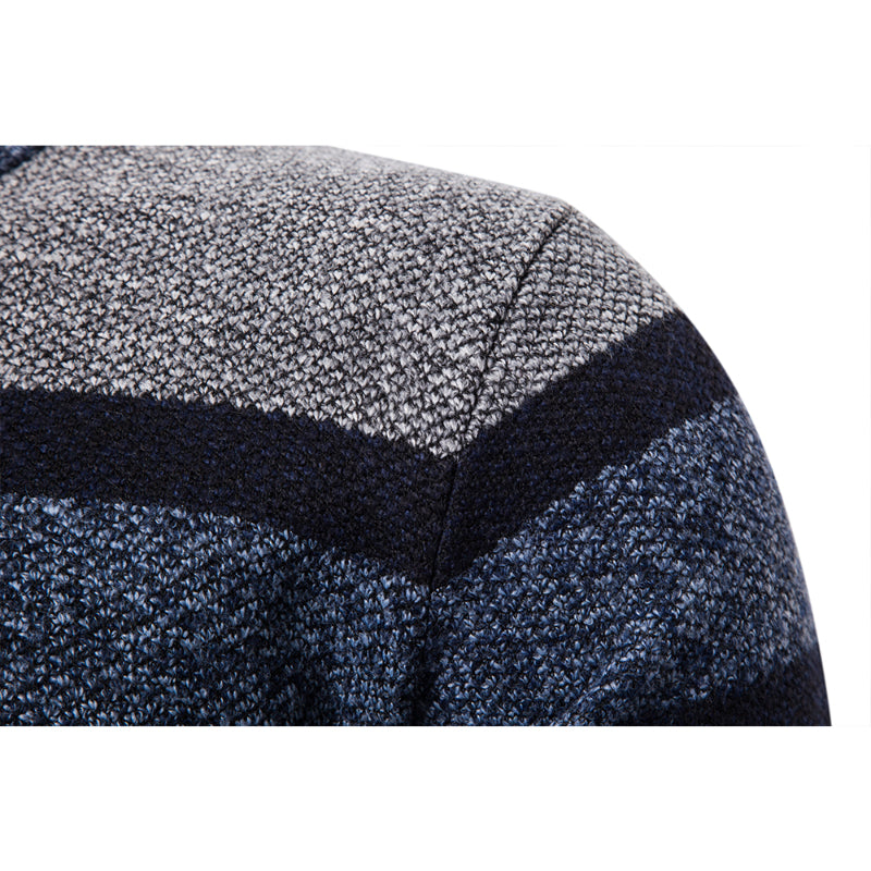 Men's Zipper Stand Collar Cardigan Jacket has a very subtle design and looks classy even on a casual day. One can easily style it with anything and zip it up. It has a striped pattern and a standard thickness. This cardigan is ideal for seasons like autumn and winter.