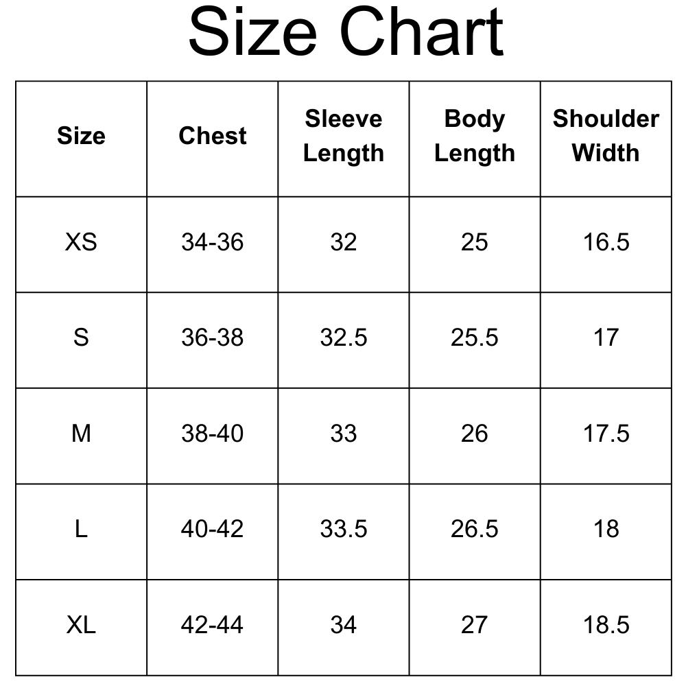 Size Chart(inches):
