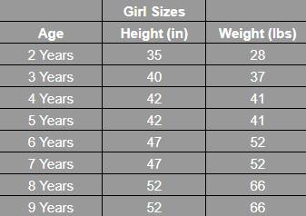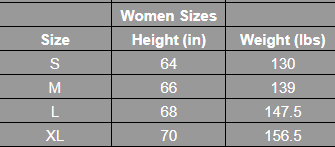 Size Chart(inches):