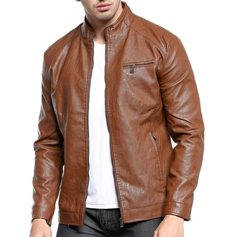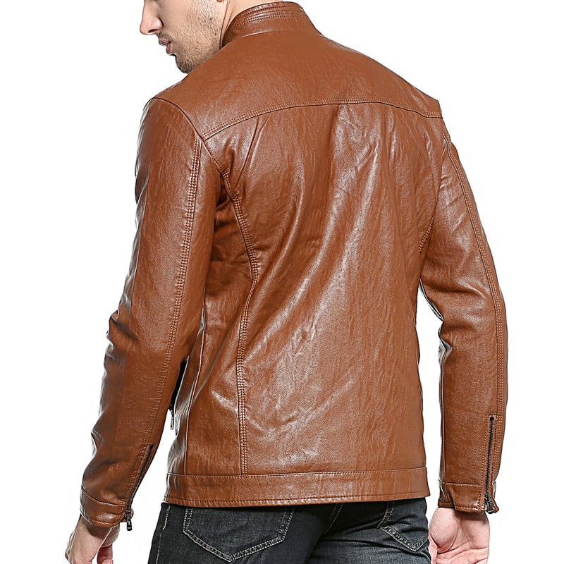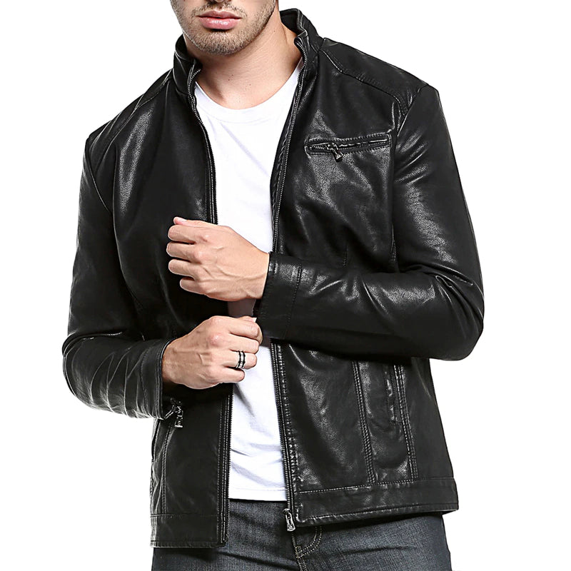 Keep up that biker attitude by wearing the Motorcycle Leather Bomber Jacket. It is filled with a manly aura and offers a great fit. The jacket features a zipper which makes it very convenient to wear. The lining is made of polyester.