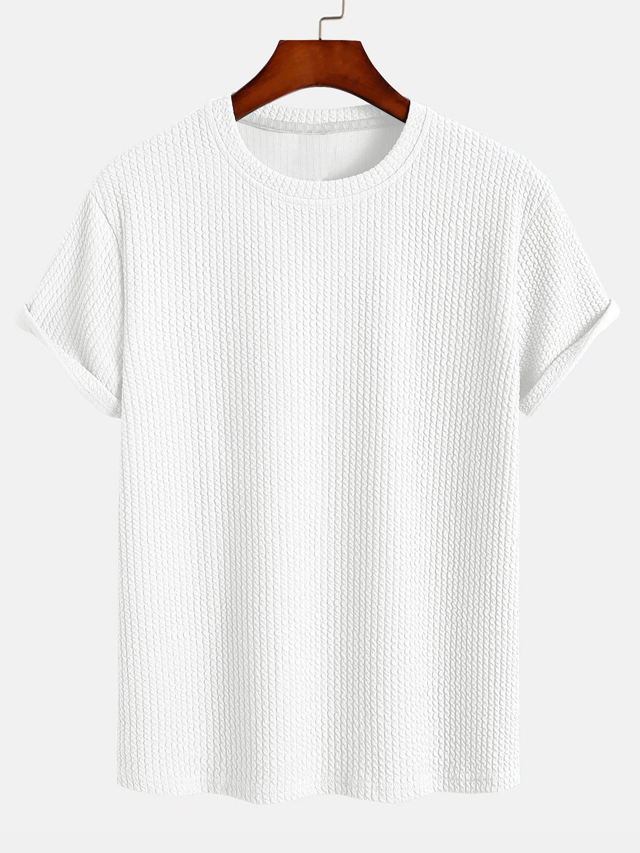 Texture: The ribbing on the T-shirt not only adds to the visual appeal but also provides a tactile experience that differentiates it from standard smooth cotton tees.