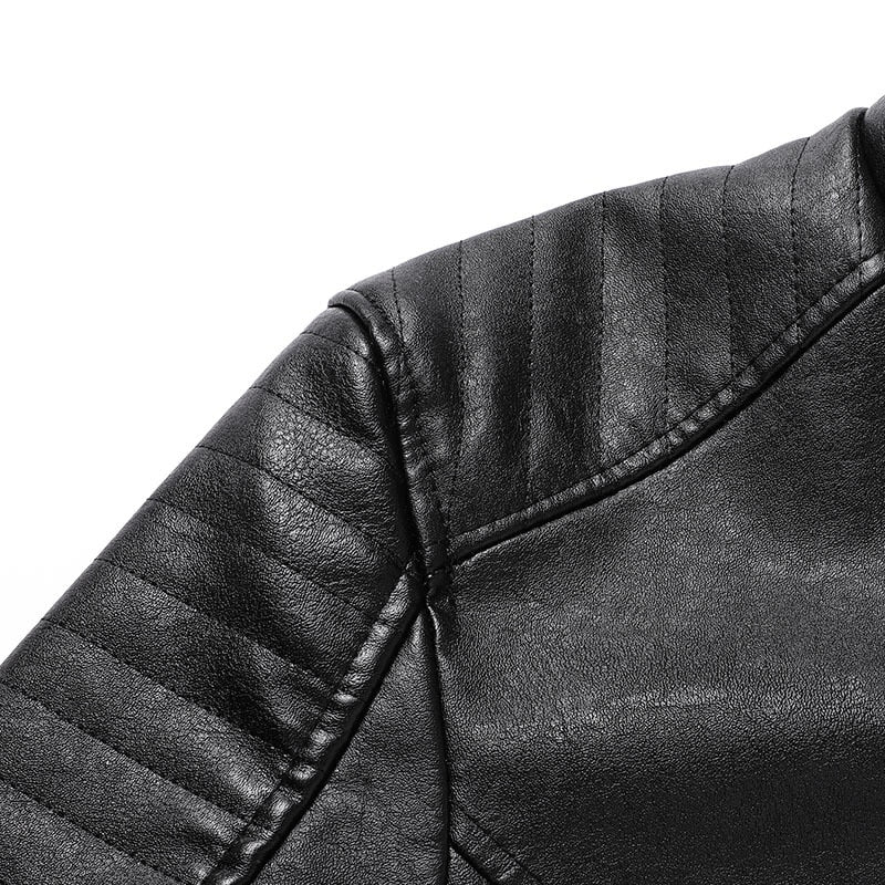 Outwear Casual Stand Collar Leather Jacket is a daily wear jacket that has fleece thickness and a solid pattern. This jacket can be worn with almost anything as it contains regular clothing length and polyester lining. The thickness of the fleece also makes it a good option for road trips.
