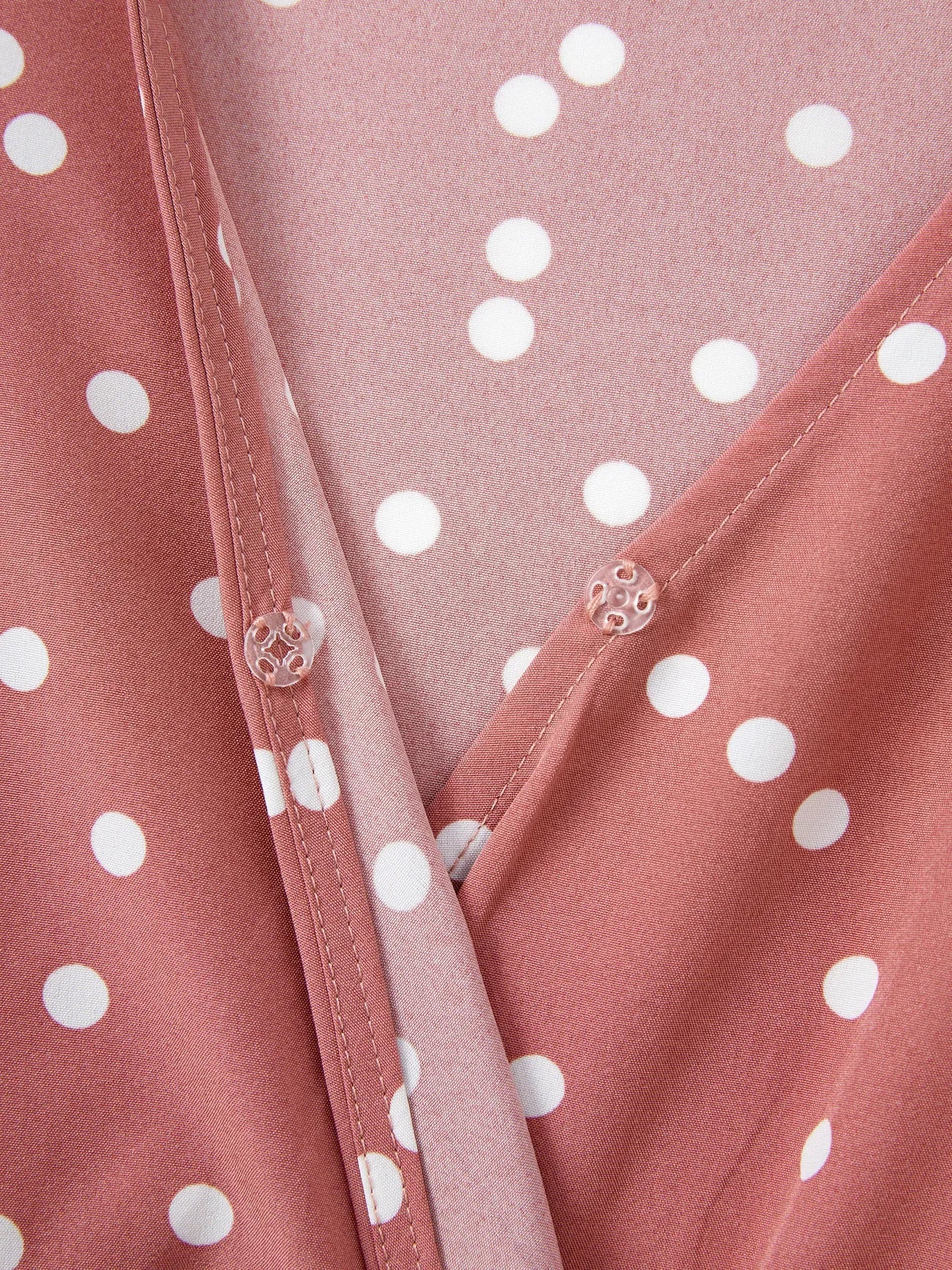 - Style: Casual, with an eye-catching all-over dots print and flutter sleeve design.