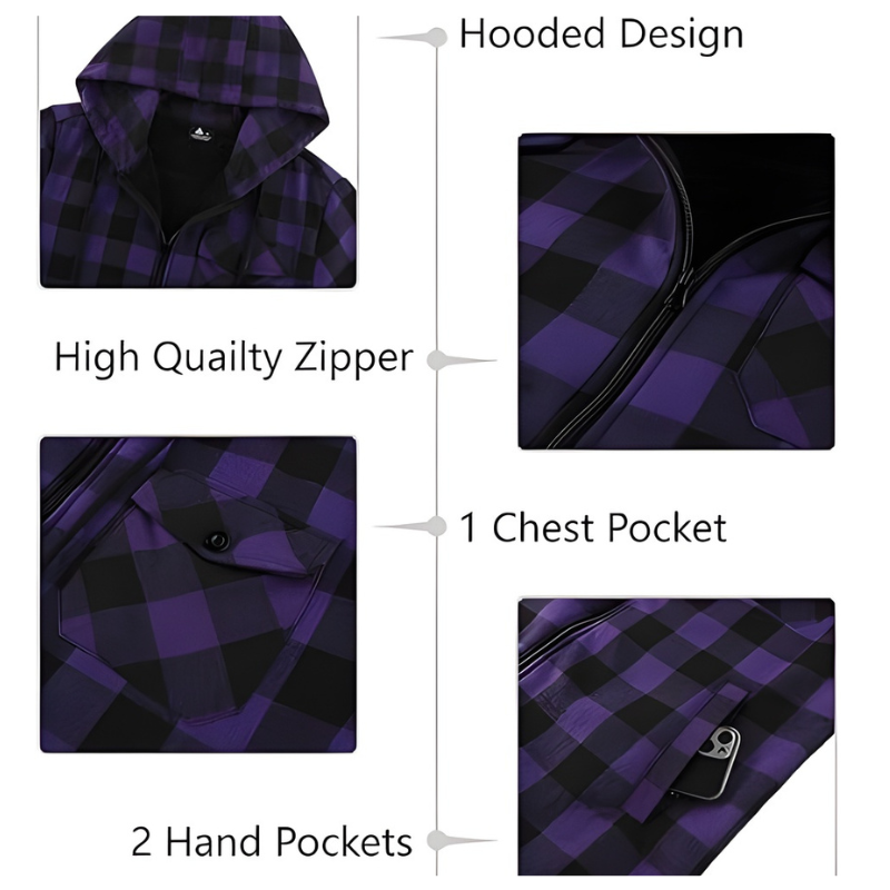 The Plaid Flannel Zip Hooded Jacket With Pocket is designed for cold weather layering and daily outdoor wear. Built from polyester yarn dyed flannel fleece, this jacket combines structure with warmth. It supports comfort during winter routines, travel, and extended outdoor use. The plaid pattern creates a timeless look suitable for both work settings and casual outings.