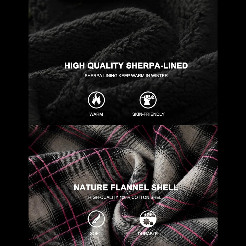 The Plaid Sherpa Lined Hooded Jacket For Men stands out for its combination of warmth, style, and everyday functionality. Its sherpa interior provides insulation during colder days, while the plaid flannel exterior maintains a timeless casual look. It works well as a lightweight outer layer in fall or as a mid-layer under heavier coats in winter.