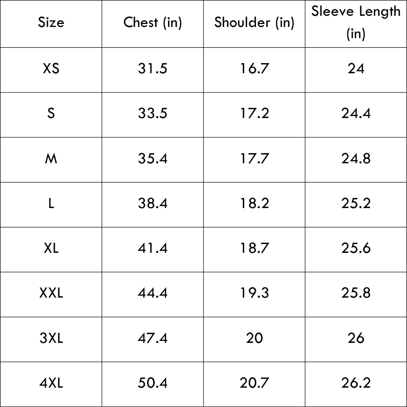 Size Chart(inches):