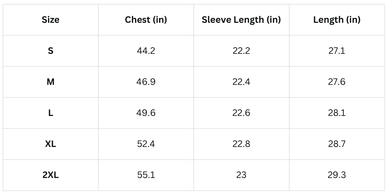 Size Chart (Inches):