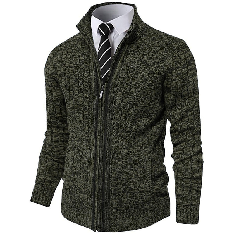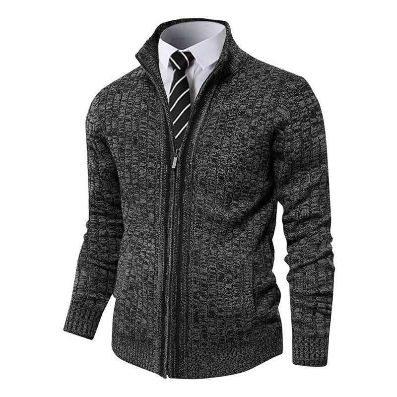 Crafted from high-quality knitted fabric, this Slim Fit Full Zip Knit Sweater effortlessly blends practicality and fashion, making it a versatile layering piece for any setting. Its full zip design and stand collar provide optimal comfort and effortless movement, while the slim fit flatters the body. Whether for formal occasions or colder seasons, this sweater is the perfect choice.