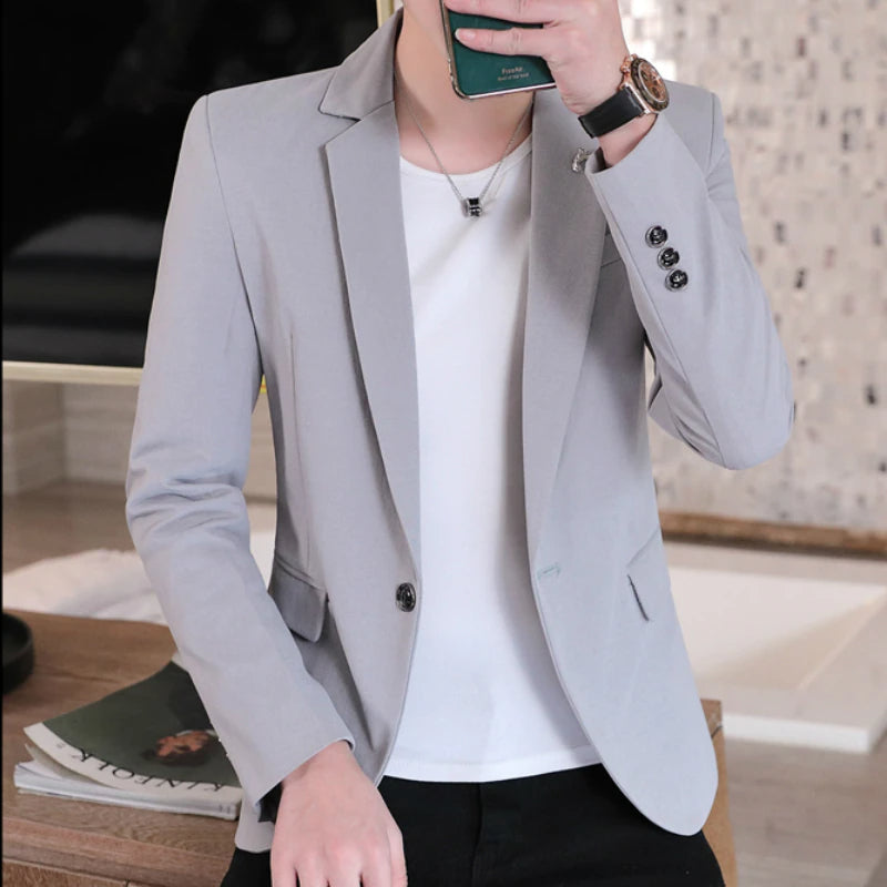 Slim Fit One Button Suit Blazer Coat is a classy blazer that is suitable for formal and casual occasions both. It is made of polyester and offers a slim fit. It is applicable in all four seasons and goes well with everything. It has a fine texture and a regular clothing length.