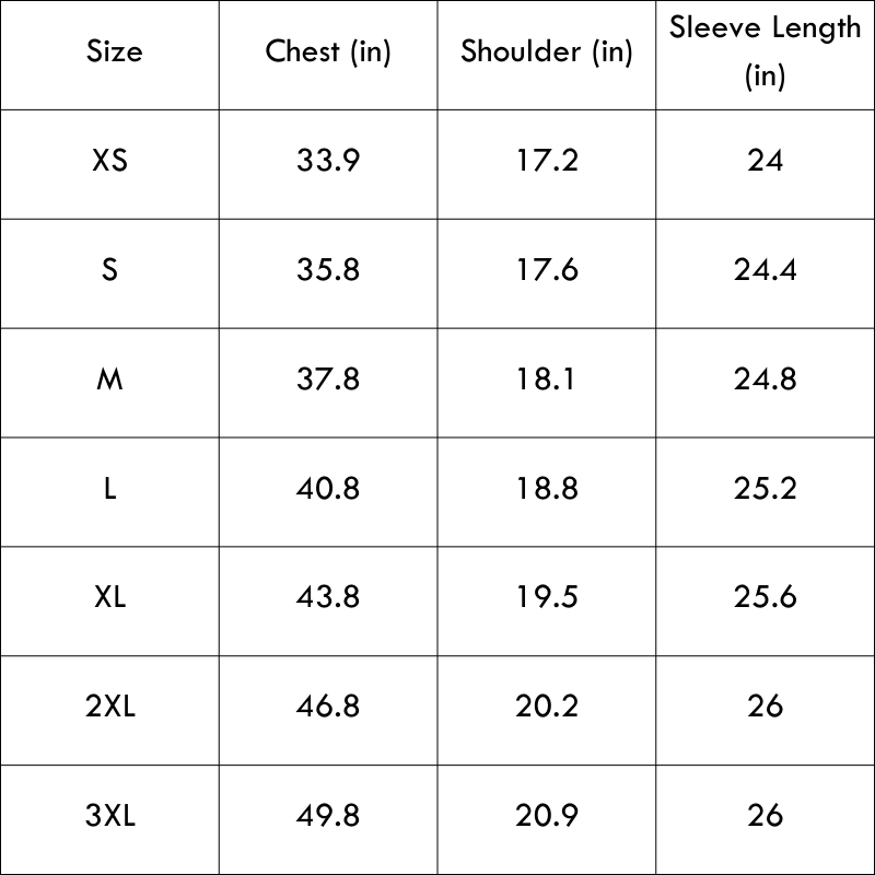 Size Chart(inches):