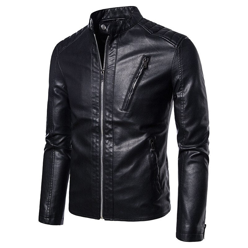 Slim Fit Stand Collar Leather Jackets help you showcase the inner fashionista in you, it is made of PU which is extremely comfortable to wear. The polyester lining makes it a great option for long outdoor trips. It also features a stand-down collar and zippers.